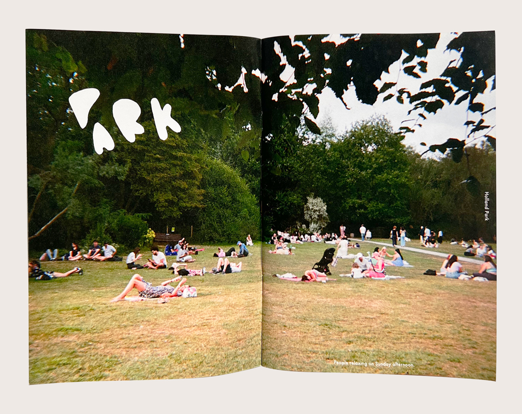 ロンドン市内の公園で過ごす人達と風景をインスタントカメラで撮影したフォトZINE。